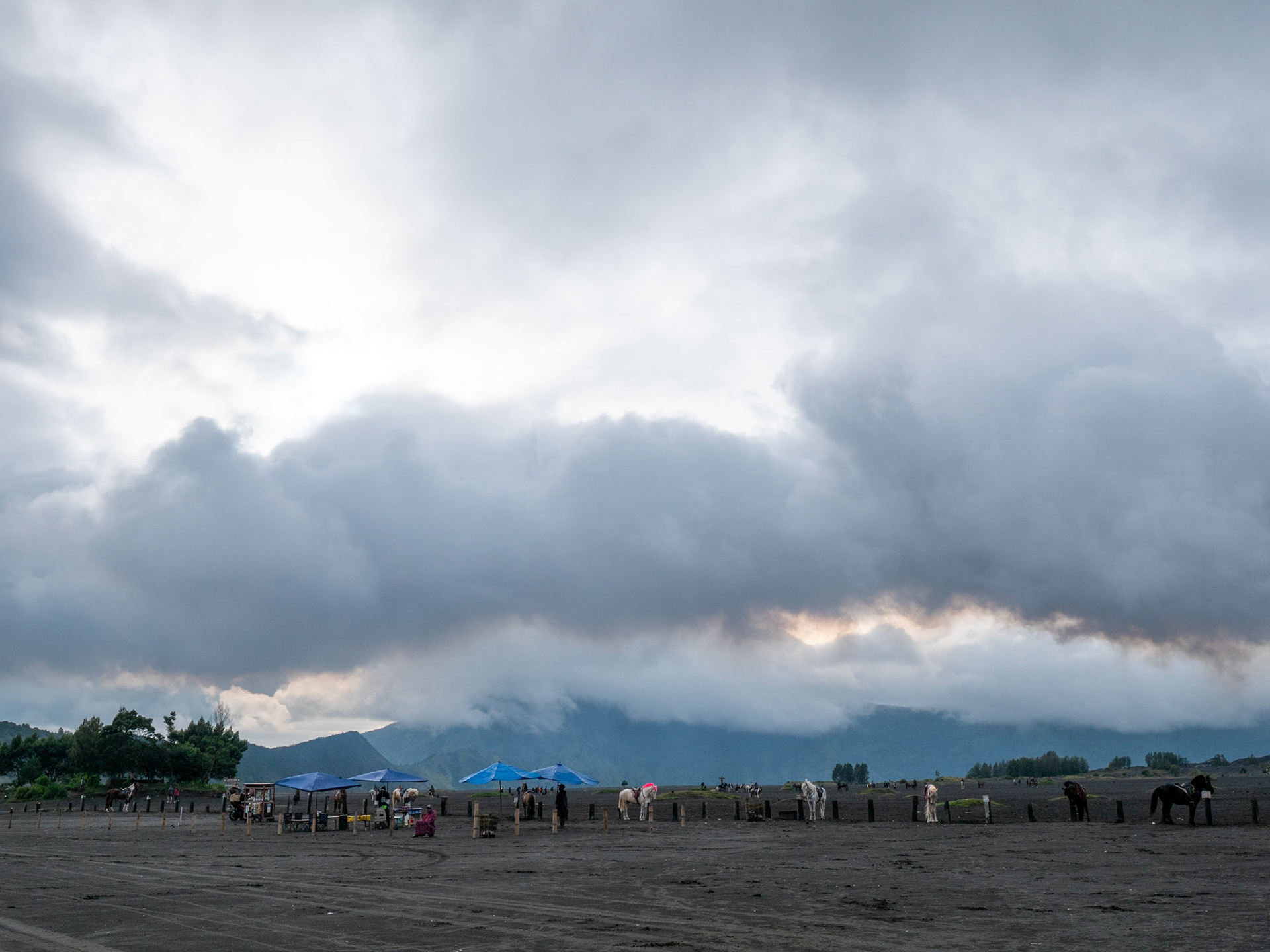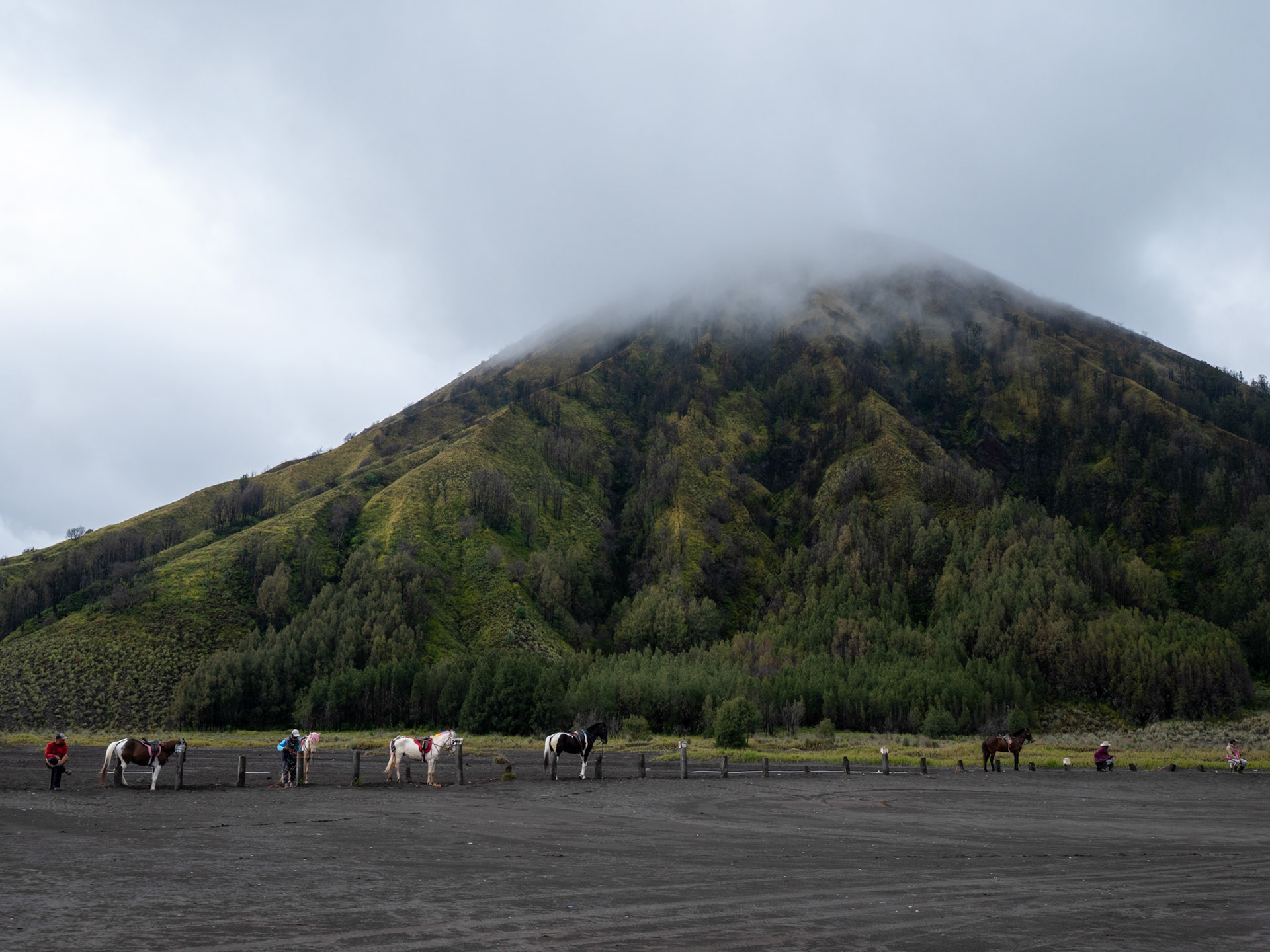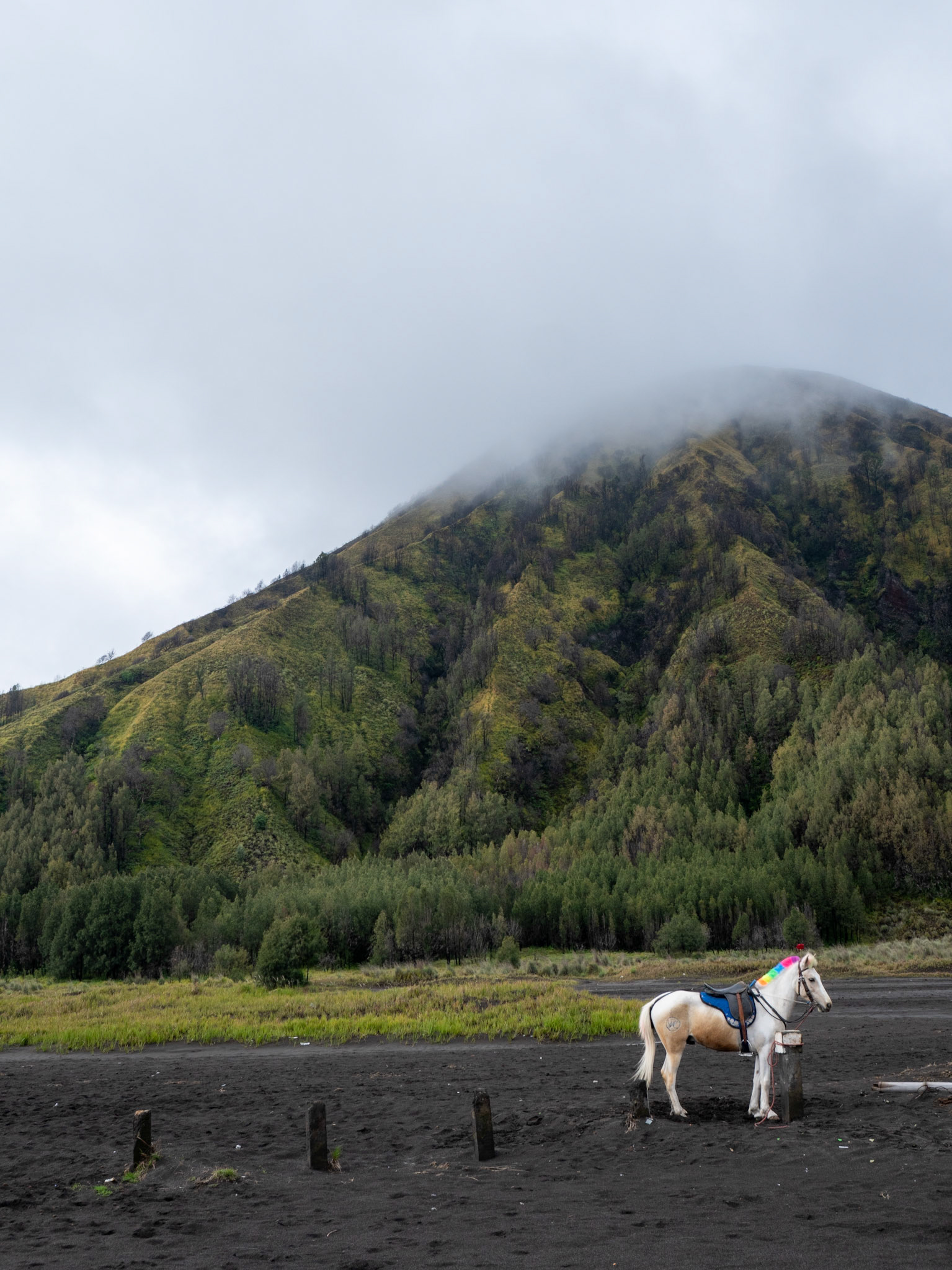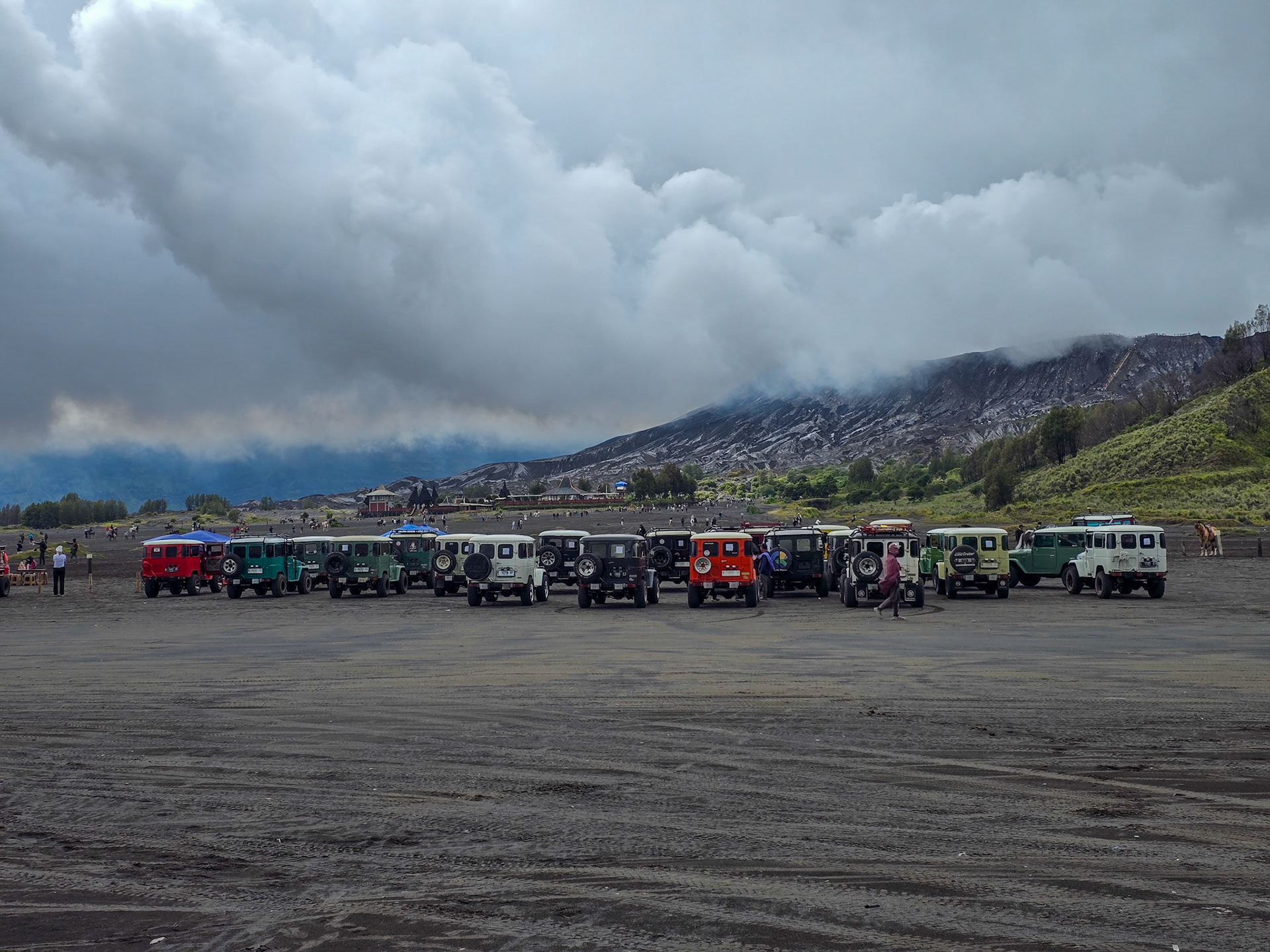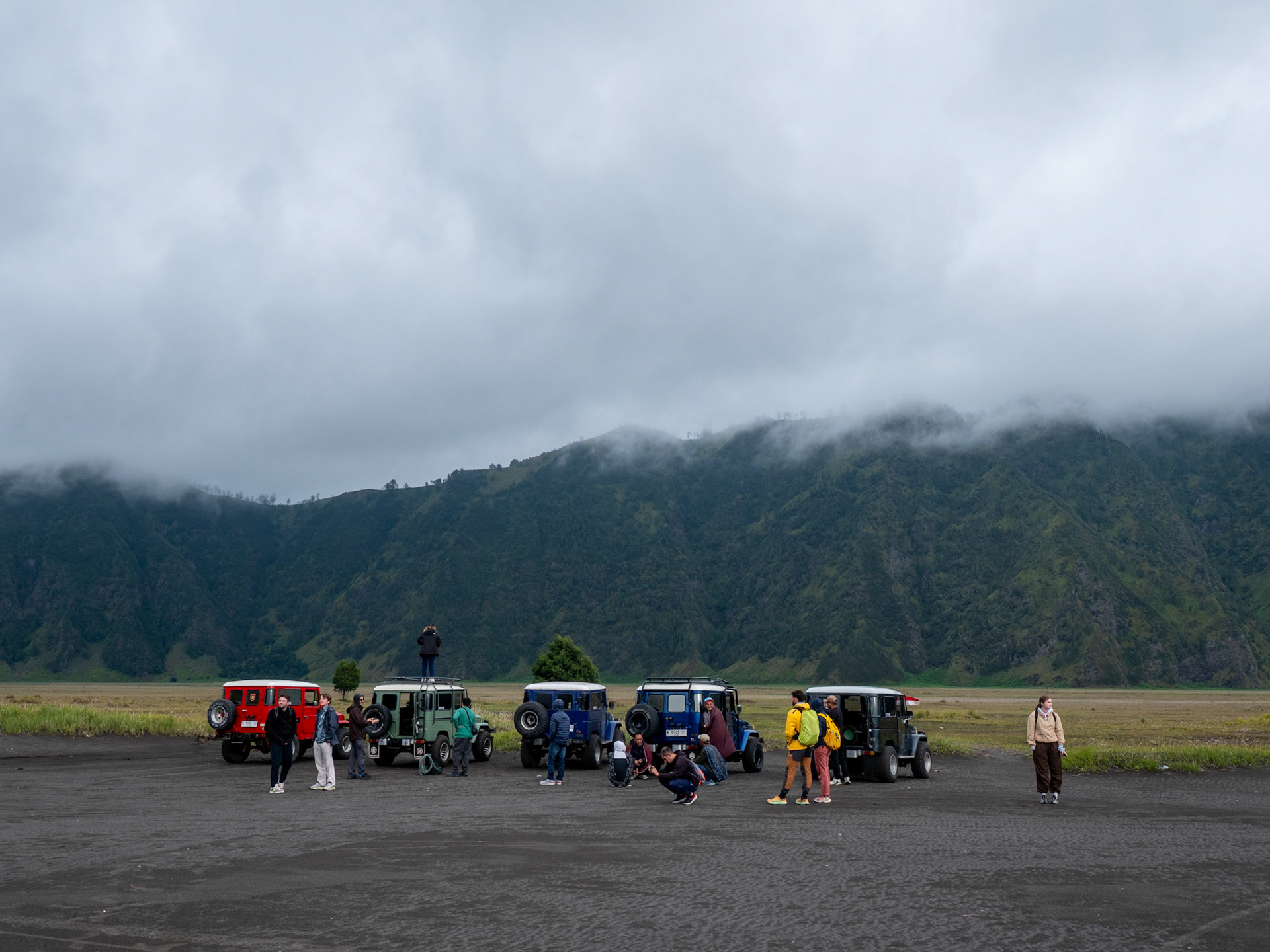Flying to Java brought a dramatic shift in scenery. From Surabaya, the journey continued to Mount Bromo, one of Indonesia’s most iconic volcanoes. The pre‑dawn hike led across the Sea of Sand, where the silhouette of Bromo rose against a sky turning from deep blue to fiery orange.