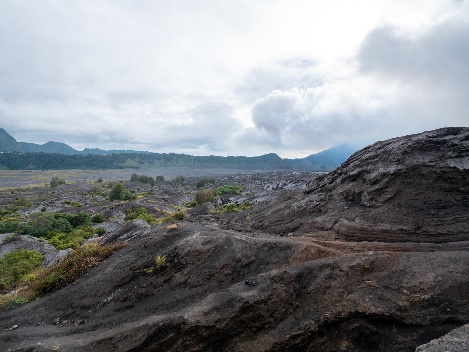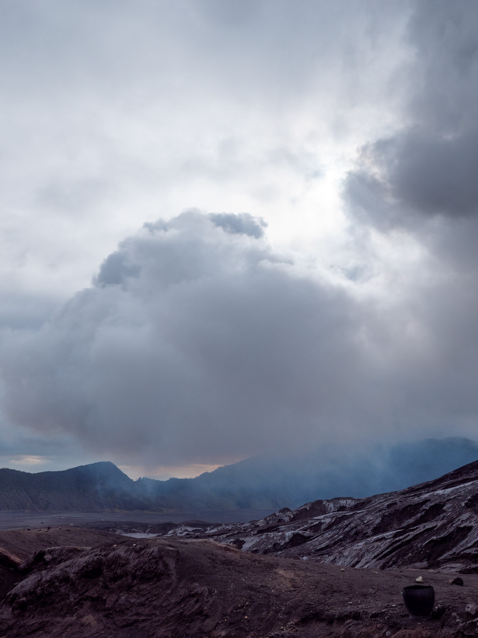 Standing at the viewpoint as the sun broke over the caldera was unforgettable — a landscape of ash, ridges, and drifting mist that felt almost otherworldly.