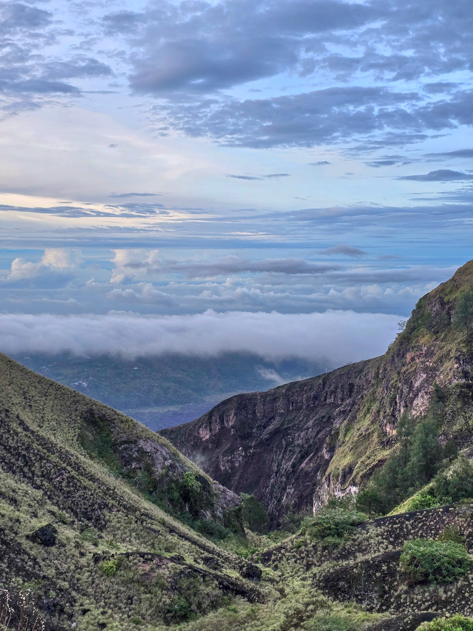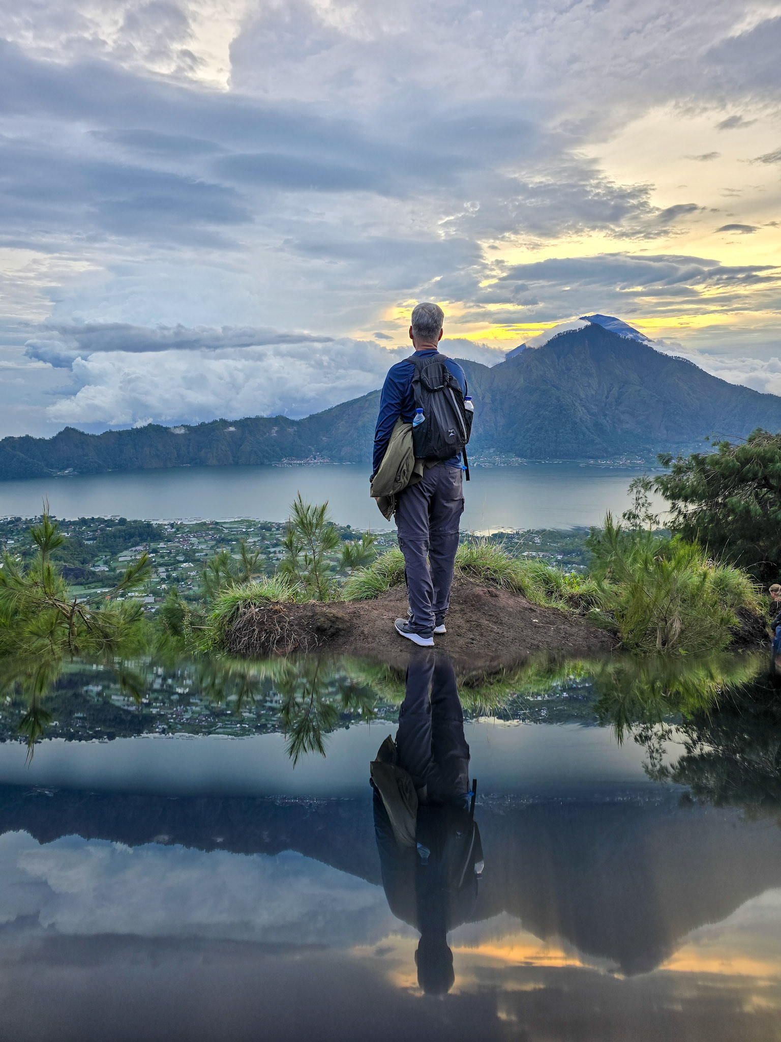 The highlight came with the Mount Batur sunrise hike — a 2:00 a.m. start leading to a volcanic summit glowing in the first light of morning. Clouds drifted below the crater rim, and the landscape slowly emerged in soft gold.